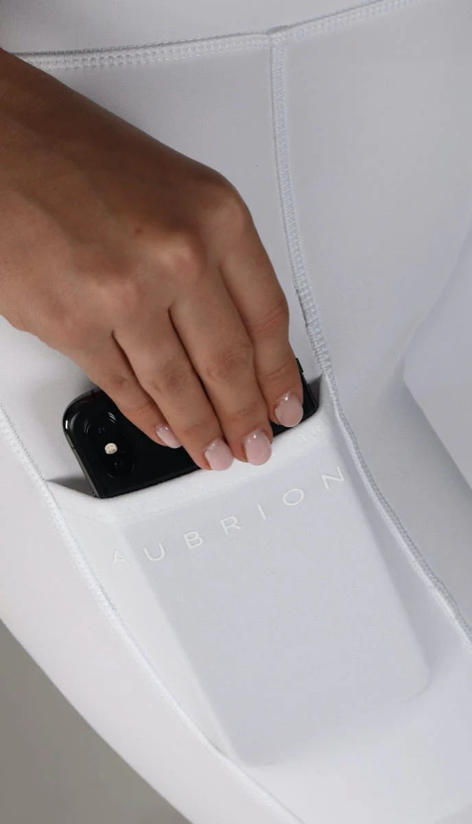 Sleek and quick drying, the Aubrion Hudson riding tights are pared down for smart presentation. Style detail: quick dry fabric, full silicone grip seat and legs, flat lock seams, supportive waistband, thigh phone pocket, Aubrion prints.